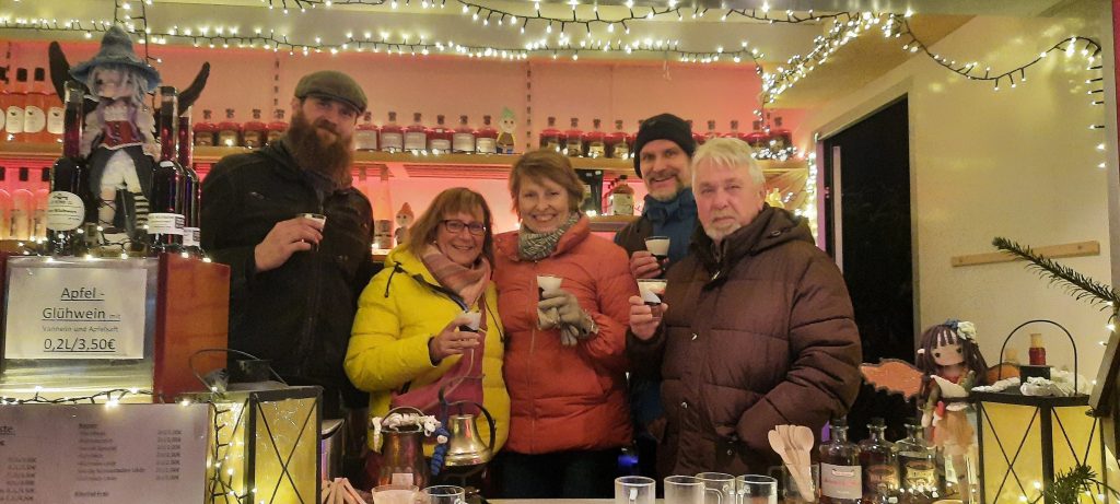 Das wurde unsere Vorsitzende Susanne Breiwe mehrfach gefragt. Die Antwort ist ganz einfach: wir wollten unseren Lieferanten Florian Fechner besuchen, der am Freitagund Samstag einen Stand in Kattenvenne hatte! Von ihm bekommen wir einen Glühweinerwärmer und die Getränke werden von ihm in Fässern angeliefert. Um die Bedienung des Equipments von Florian kennenzulernen, sind die Vorsitzende Susanne Breiwe und ihre Stellvertreterin Andrea Pohl mit ihren Partnern nach Kattenvenne gefahren.