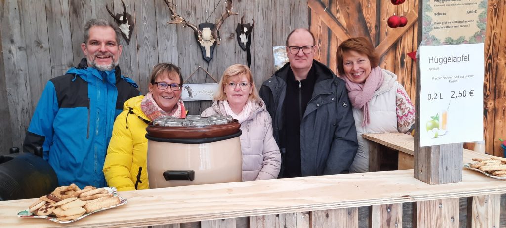 Heute sind wir zum Weihnachtsmarkt nach Kattenvenne gefahren, um den Apfelglühwein und Apfelsaft von Florian Fechner zu probieren. Uns fiel auf, dass beide Getränke süßer sind als letztes Jahr!